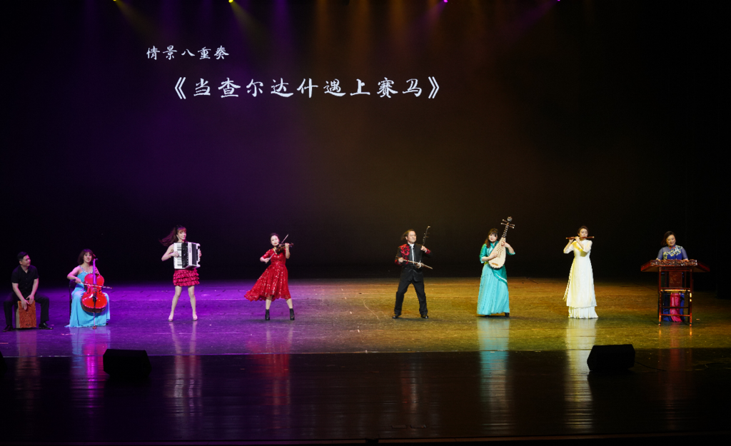 当晚7点30分,一曲激昂的器乐合奏《灵动飞旋》拉开了整台音乐会的序幕。音乐会中,演员们用歌声、二胡等多种表演形式,依次带来了《萱草花》《当查尔达什遇上赛马》《我的深情为你守候》等10首充满活力又兼具隽永秀美气质的曲目,伴随着他们的表演,现场观众也被深深感染,多次以热烈的掌声来表达敬意。