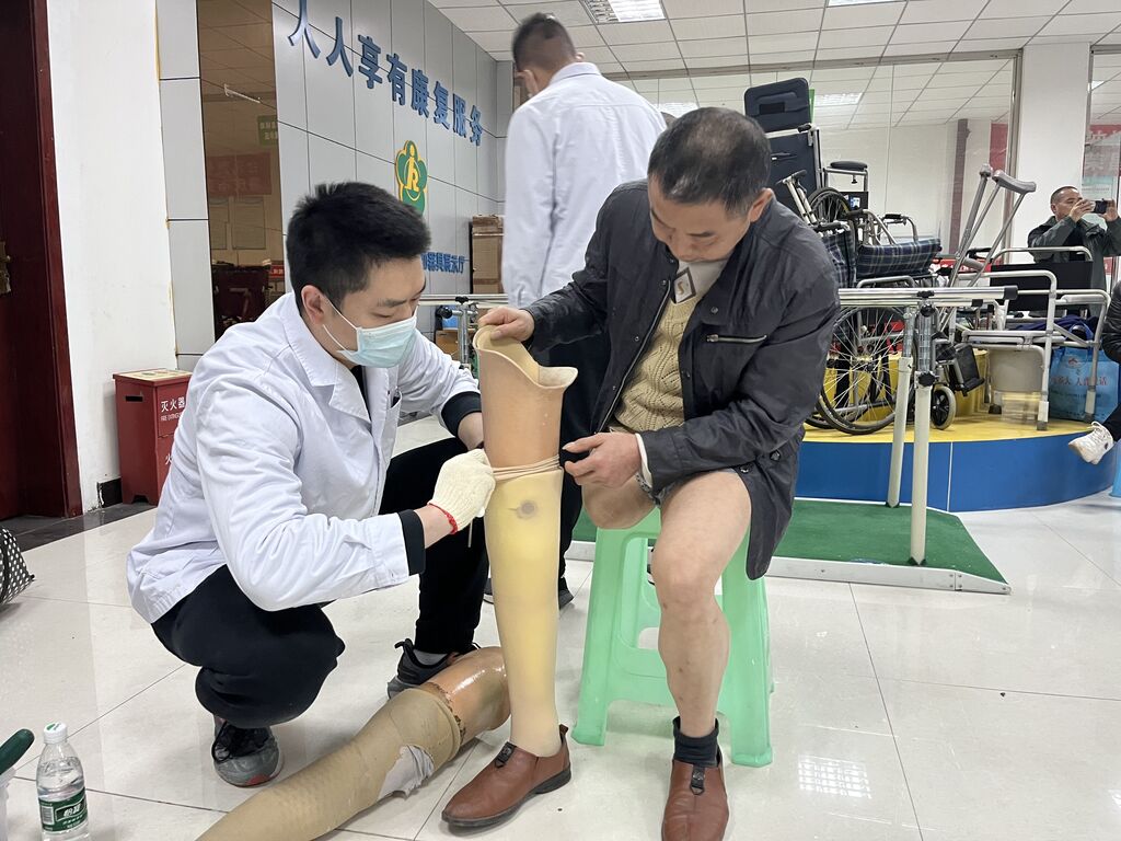 活动现场,假肢公司专家为89名前期已经取好型的残疾人,免费进行了92例假肢安装,并组织试穿和指导训练。之前,假肢公司的专业人员根据每位残疾人的截肢部位和伤残程度,逐一进行细致检查,对符合安装条件的残疾人进行测量、登记并制作模具,确保取型“量体合身”。装配假肢是肢体残疾人最直接、最有效的康复手段,可以弥补缺陷、增强代偿功能、减轻身体障碍,让他们更好地融入社会,增强生活的信心和勇气。