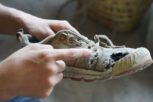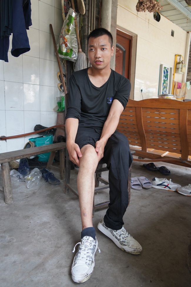膝盖无法伸直,站起来走路的廖爽,腿呈“X”状,导致脚底不是正常接触地面。长期以来,廖爽的鞋两周就会被磨破一个大洞,脚趾也磨出了厚厚的茧。“鞋子只能买最便宜的,因为它最多陪伴我半个月。”廖爽说,只要能够站起来,就有了信心,也就对生活充满了希望。