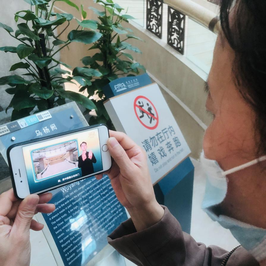 活动现场,10余名聋人朋友作为三峡博物馆智慧导览手语讲解视频的第一批体验者,纷纷用手机扫描二维码,观看手语讲解视频。“今天在三峡博物馆体验了手语视频讲解导览,各个楼层都有信息无障碍的服务,结合视频进行参观,真是一种美妙的享受。”重庆师范大学大四学生徐凯枫(听力残疾)通过手语表达了心情的喜悦。他认为通过上线“手说史物——手语讲解视频导览”,尊重了听障人士参观博物馆和文物讲解服务的权利,增强了公众群体的文明意识,营造了一种平等、尊重、理解、互助的和谐氛围。