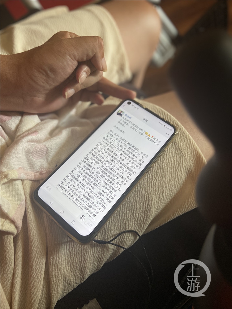 今年6月18日晚,用勉强能动的两根指头,他在手机上艰难地敲出了一封545字的入党申请书。