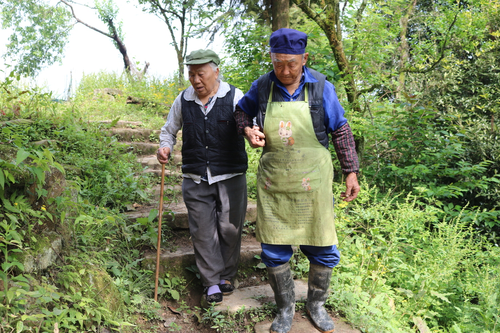 丈夫深知妻子晕车不好受,每次去到儿子家,老两口都会手挽手沿着公路步行。这道美丽的风景,时常出现谭家山至同合场近十公里的盘旋山路上。