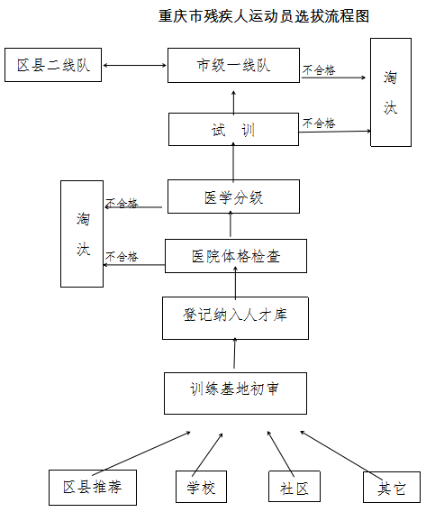 (三)各区县推荐选拔:区县残联向重庆市残联推荐运动员到相应训练基地进行训练选拔。