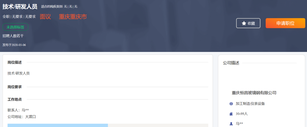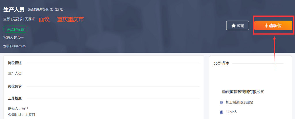 在岗位详情中点击“申请职位”即可完成简历投递,完成简历投递后,用人单位将收到简历并查看,符合用人单位用工要求的,用人单位将发起视频面试邀请或给予电话通知,如下图:
