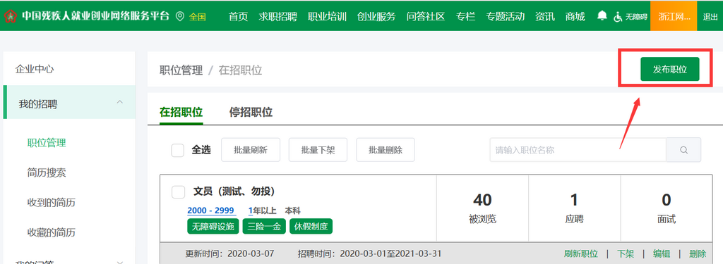 第二步:发布招聘会岗位或维护招聘岗位信息