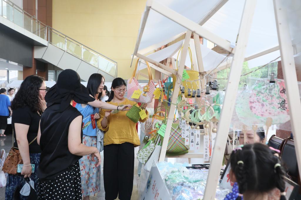 “这些创作很有温度,也非常有意义。”市民张女士在DIY体验区尝试编织时感慨道。