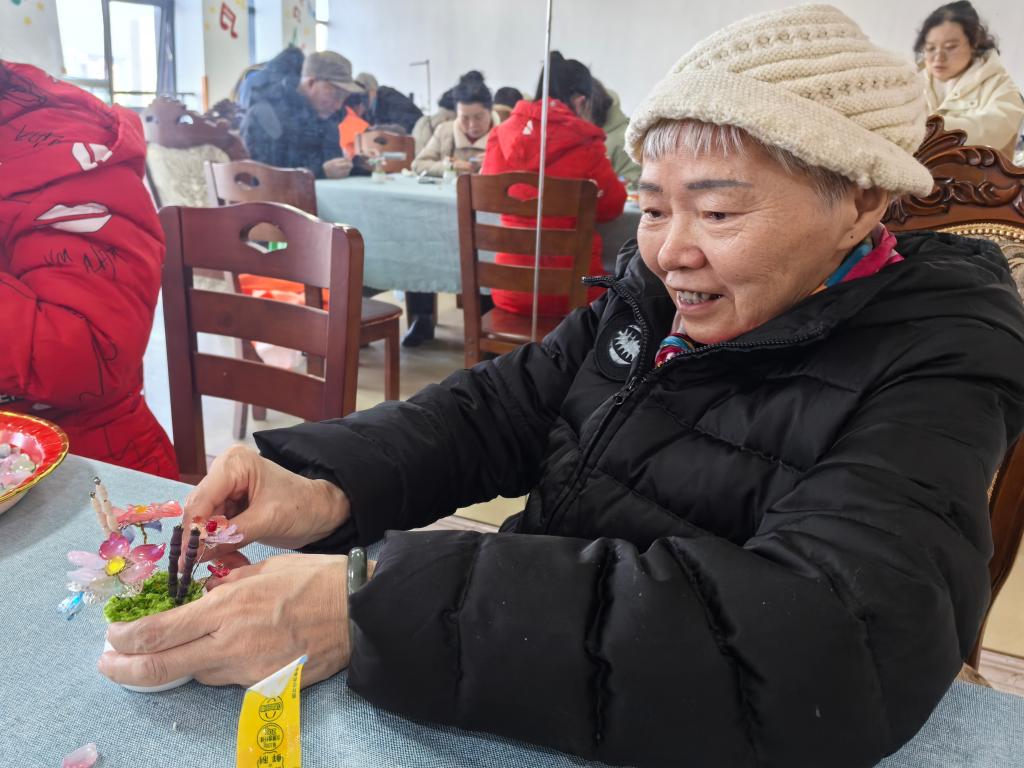 随后,在志愿者的组织和帮助下,现场残疾人朋友开展了盆栽、花摆等手工制作。各式各样的手工艺品在一双双巧手中完成,大家不仅体验到动手的乐趣,还增强了自我成就感,每个人的脸上都洋溢着幸福的笑容。此外,在手工制作过程中,穿插了“你画我猜”“的互动游戏,大家积极参与,相互配合,现场笑声不断。