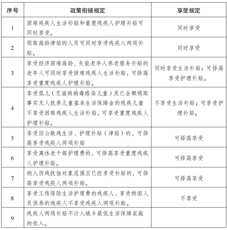 为进一步提高惠残助残政策的知晓率,保障残疾人朋友的切身利益。即日起,市残联官网、官微将围绕残疾人朋友关心、关切的扶残助残政策等热点话题,持续推出“助残政策热点问答”系列宣传报道。今天,我们一起了解残疾人两项补贴政策与其它政策的衔接。