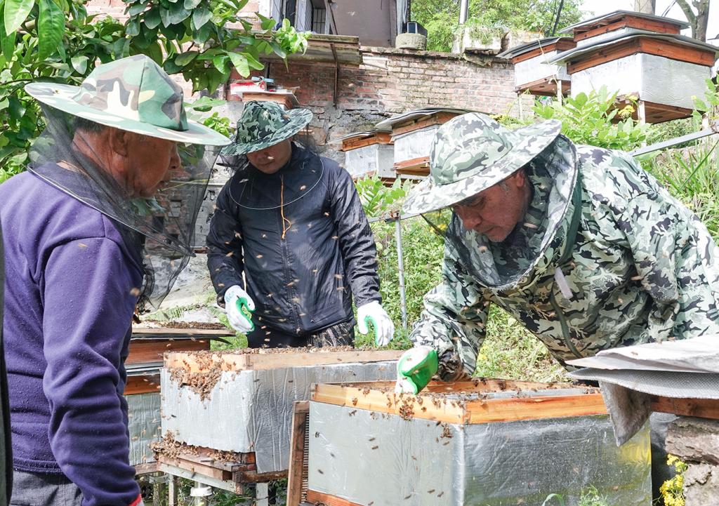 于是,经过多方考察,张荣决定养蜂。为了取得真经,他专门到附近的养蜂大户家去拜师学艺,还先后到贵州、四川、重庆等地学习先进的养蜂技术,学成后又趁热打铁,买了两箱蜜蜂来练手。